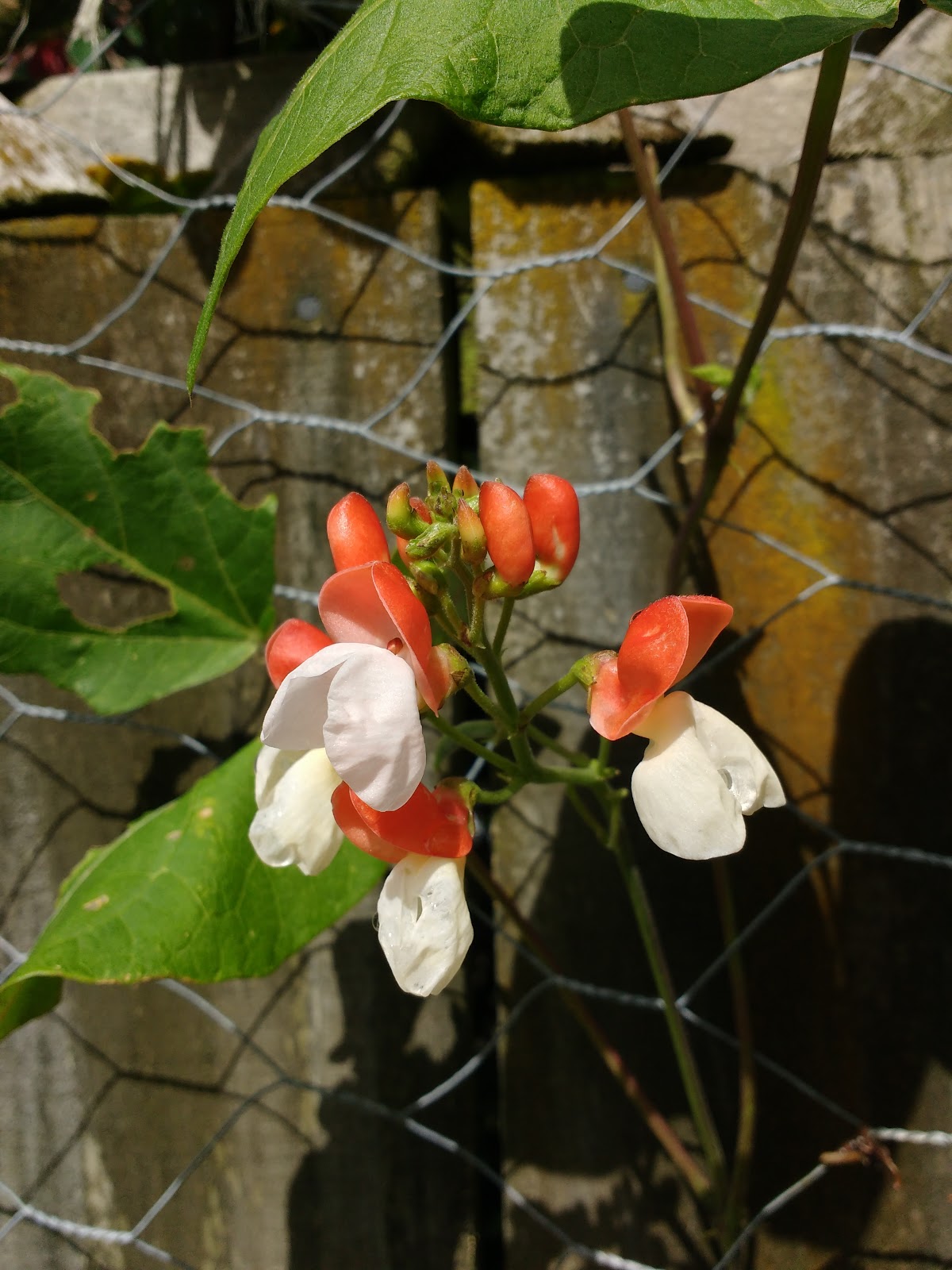I have a special place in my heart for runner beans. They were the first vegitable I ever grew. It was about seven years ago. We bought this house with a wildly overgrown veggie garden in the back. That first Summer I paid a friend's teenage son to clear the weeds out for me. There was a big trellis running along one side, about two meters tall and three meters long, chicken wire stretched over a sturdy wooden frame. The dried out remnants of last season's runner beans were still clinging to it. My friend gave me some very basic advice on soil preparation, tucking a few dry runner beans into the soil as we talked.
